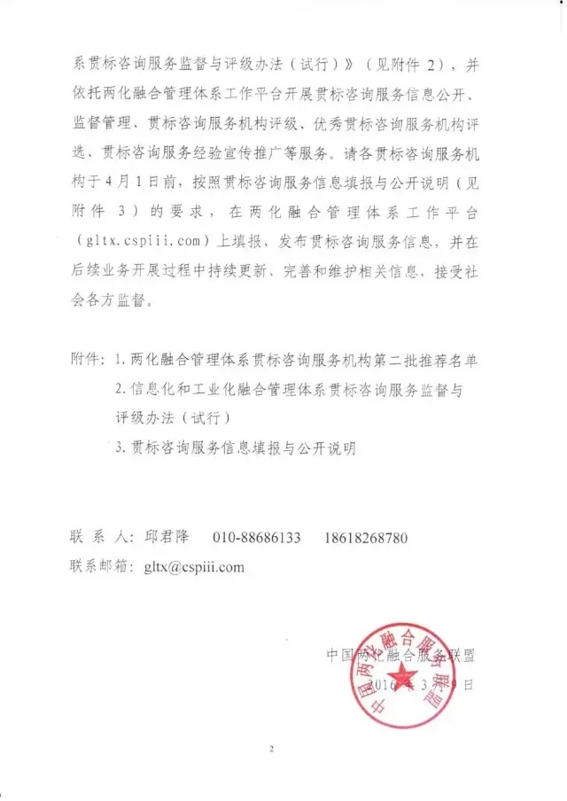 2015年8月,北京大陸航星質量認證中心股份有限公司(HXQC)向國家工業(yè)化和信息化部提交兩化融合管理體系貫標咨詢機構的申請,經(jīng)過半年審核獲得批準。
